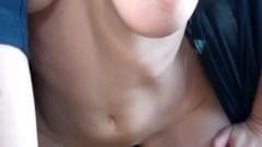 Esta amadora satisfaz sua buceta sentando na vara de engrenagem do carro e penetra-se com os brinquedos de sexo, uma cena imperdível.