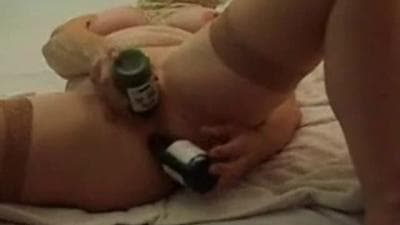 Neste vídeo você vê um Milf gordinho se fodendo com duas garrafas de vidro e ela está totalmente envolvida.