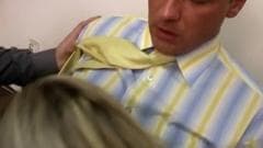 No trabalho esta fantástica loira oferece seu corpo para os dois homens que são atraídos um pelo outro, ela quer como é um sexo a três!