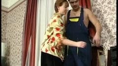 Um jovem técnico de televisão é seduzido por esta mulher madura com tesão que não pode esperar para ter seu pênis duro dentro de sua vagina. Assista!
