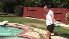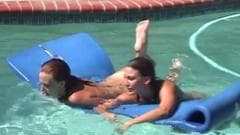 Um pequeno momento engraçado e íntimo entre duas mulheres lindíssimas que irão sem dúvida aproveitar bem a piscina e se divertir à grande !