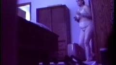 Alguém escondeu uma câmera no quarto desta velha mulher e grava enquanto ela se veste e despe-se,ela não tem idéia!