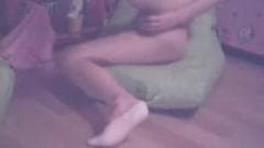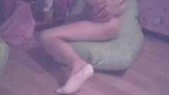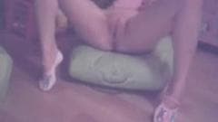 Uma menina amadora mostra sua buceta para nós onde está sentada numa almofada no chão e enfiando um vibrador na vagina para ficar toda molhada!