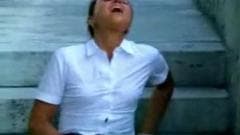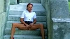 Esta mulher francesa quer se masturbar e o único lugar onde ela pode estar completamente sozinha e em privado é aqui nos degraus.