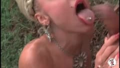 Esta loira gosta de foder ao ar livre e hoje não é excepção! Veja-a em ação como ela é fodida como uma prostituta, ficando com porra sobre sua bunda