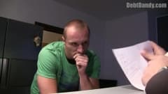 Este homem musculado está a ser castigado por não pagar as suas dividas e vai ter que fazer tudo o que ele quiser.