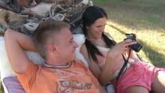 Esta jovem mulher morena está no exterior hoje com este homem que ela chupa-o bem e lhe dará prazer com uma punheta bem agradável !
