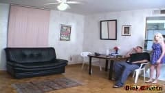 Um casal convida amigo preto a casa e enquanto um está bem estendido no sofá, ela vai ter com o preto na cozinha para lhe chupar a verga.