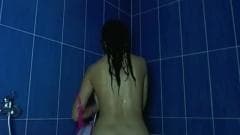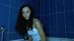 Ela ligou sua webcam para filmar enquanto sente prazer no chuveiro, tocando-se suavemente e com entusiasmo, tornando-nos excitados.
