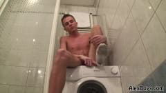 Este jovem gay Twink tem um monte de diversão masturbando em cima da máquina de lavar roupa e não pode esperar para nos mostrar seu pênis.