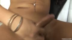 Uma cena fumegante com esta transexual quente que descasca para nós e começa a se masturbar na frente da câmera! Você não quer perdê-la!