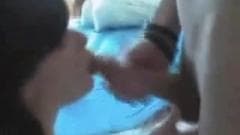 ![Ele larga seu esperma no rosto dela! Ele larga seu esperma no rosto dela!]()