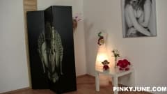 Ela está sozinha hoje e para sentir prazer, ela vai usar seus dedos, mas ela também usa alguns brinquedos sexuais para uma boa penetração