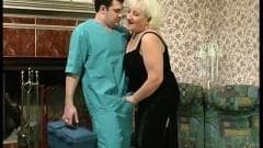 Esta velha avó só quer provar que ela ainda consegue, seduzindo o seu médico para foder seu pau e fazendo-o se vir sobre suas tetas.
