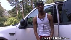 Esse cara preto esteve de olho neste cara branco por algum tempo. Ele enche-se de coragem e pergunta se ele quer levar com uma rola preta na bunda.