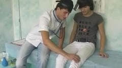 Um desses meninos é médico e quer ajudar seu amigo se sentir melhor Ele puxa seu pau e penetra sua bunda para fazê-lo se vir.