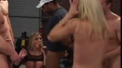 Cadelas tomando vários paus na buceta! Durante a luta de boxe entre dois garanhões, essas duas meninas sobem ao ringue e ficam apanhando de todos os pênis presentes...