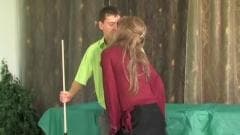 Este homem vestido de mulher excita o seu parceiro enquanto jogam bilhar. Eles fodem sobre a mesa com todo o entusiasmo do mundo.