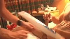 Aqui vemos dois amigos que estão muito atraídos sexualmente e decidem que é o melhor momento para foder na cama como homossexuais.