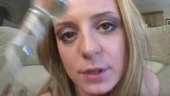 Esta bela jovem loira vai se divertir muito numa sessão de masturbação! Ela enfia seu vibrador na sua bunda e buceta dela até ter um orgasmo!