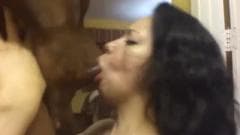 Uma morena que adora lamber pau nos mostra como ela faz isso melhor na webcam com este pau negro que enche a boca dela de esperma!