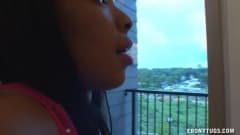 Esta menina negra se ajoelha para masturbar esse pau enorme e ela vai usar todas as suas habilidades até ele preencher o rosto dela com porra.