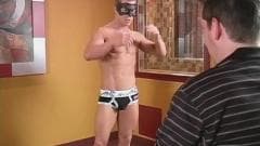 Este cara musculado quer que o seu amigo lhe bata uma boa punheta para coloca-lo completamente excitado. Ele fica muito excitado no sofá.