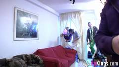 Que podemos dizer desta bela puta? Ela adora todos os tipos de caralho e por isso está muito contente por estar entre estes caras excitados.