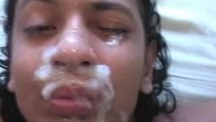 Aqui está uma vagabunda muito motivada, que começa a chupar um pau grosso antes de levar na buceta e no rabo, até ficar com a porra toda no rosto!.