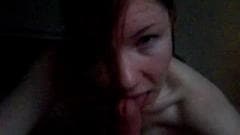 Esta puta morena gosta de chupar pau e ela não se importa que seu namorado esteja gravando a cena, porque ela sabe como fazê-lo ejacular.