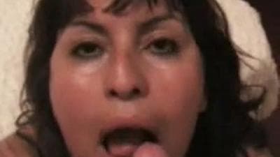 Ela é boa a chupar e prova isso nesta cena colocando sua boca no pau do seu namorados até que ele enche a boca dela com porra e ela engole!