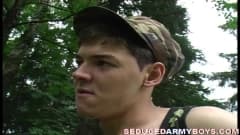 Estes dois jovens soldados estão ao ar livre, onde eles passem a maior parte do tempo sozinhos chupando-se um ao outro até ejacular!