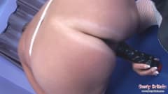 Esta atriz porno é uma BBW bela e sente-se muito excitada na sala do bilhar e decide se masturbar na mesa com o taco.