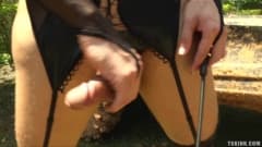 Esta transexual mesmo em pleno exterior exibe o seu belo corpo ! Um puro momento de felicidade e prazer à mistura !