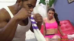 Este gajo tem um pénis enorme e é mesmo com os pés que ela irá masturbá-lo ! Um momento único e excitante aqui em Boafoda.com !