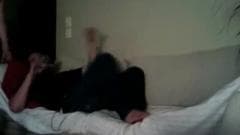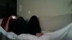 Aqui nós vemo-la vestida sexy para o seu homem que está no sofá esperando por ela para excitá-lo e ela faz isso tocando-se para ele!