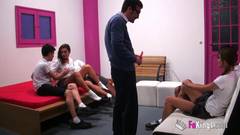 Está uma cena de sexo em grupo entre estudante muito jovens que se querem divertir transando juntos. Elas gozam de varias rolas ao mesmo tempo.