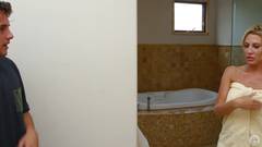 Que mais pode fazer esta bela loira, gostosa com um belo par de seios. Uma rola é o suficiente para que ela fique feliz transando.