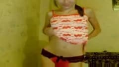 Aqui vemos uma jovem morena em frente da webcam despindo-se e acariciando sua pele sensualmente antes de terminar nua.