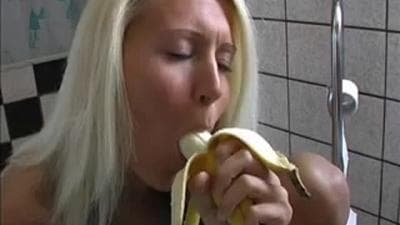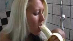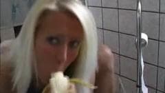 Ela gosta de usar diferentes tipos de ferramenta de masturbação e vamos vê-la com uma banana na buceta dela e uma escova de vaso sanitário!