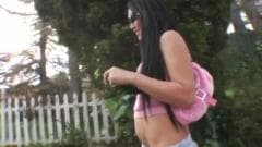 Esta transexual morena não deixa de aproveitar um segundo quando se masturba. Ela adora o seu pénis e se excita muito nesta cena.