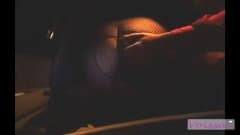 Esta safada masturba-se antes de se divertir com um grande brinquedo sexual, enquanto o marido dirige o carro, ela gosta de excitá-lo!