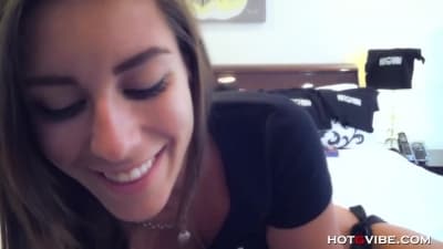 Ela é uma morena muito gostosa que quer gozar com um dildo metido na buceta. Ela esta de pernas bem abertas deitada na cama.