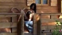 Nina Roberts faz isso ao sol para foder um cliente lá fora. Esta morena com grandes mamas sopra como um profissional.