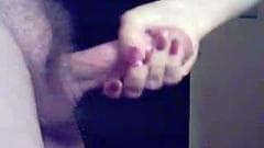 Esta menina quer brincar com o pau do namorado e usa um brinquedo sexual que pode chupar seu pênis até estar totalmente ereto.