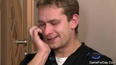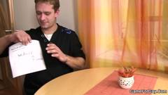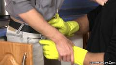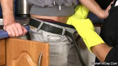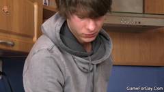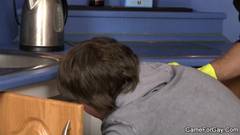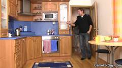 Este jovem não resiste à tentação de transar seu amigo na cozinha. Ele atinge-o por trás e não há quem os pode separar. Eles fodem como nunca antes