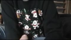 Uma morena vestindo uma camisola de natal goza sugando e puxando o pénis até ele estar pronto para entrar em erupção no rosto dela, não perca !