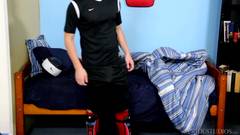 Ele encontra-se hoje sozinho e é mesmo por isso que decide passar o tempo a bater uma punheta na paz do seu quarto !