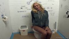 Sylvana tira a roupa na casa de banho e chupa o pénis de um gajo que ficou teso quando ela começou a o chupar. Duro como uma pedra.