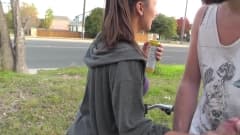Esta morena linda e peituda quer desfrutar de um pouco de diversão e é por isso que ela excita o namorado com um boquete e masturbação ao ar livre!